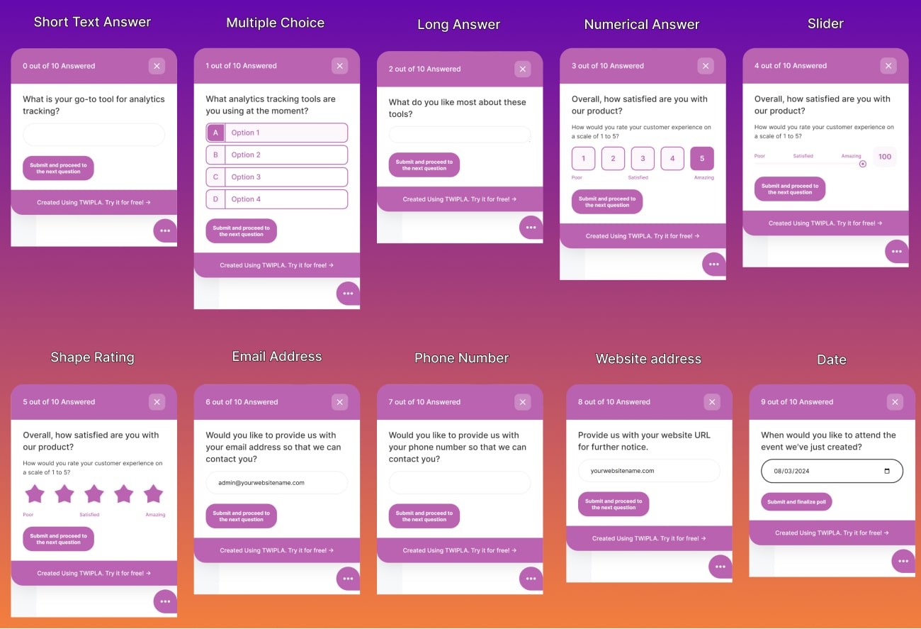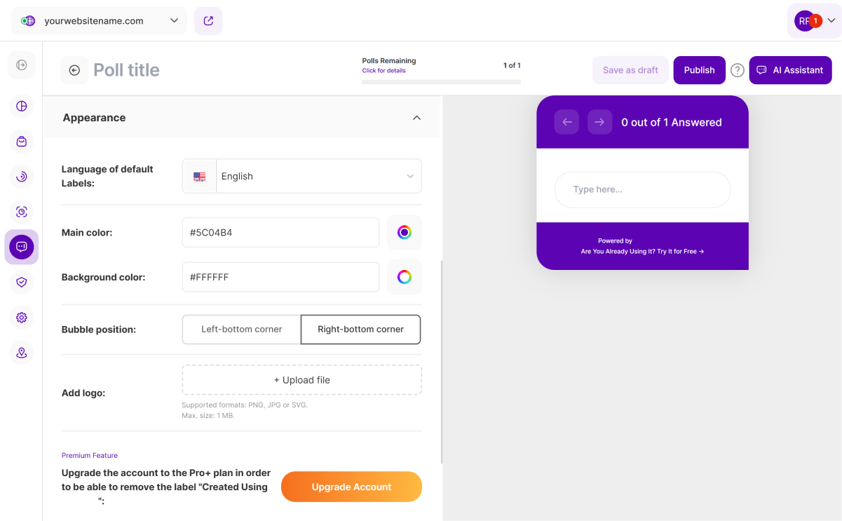 Our app offers a variety of personalization options to ensure that your polls and surveys align perfectly with your website and your brand identity. Customize elements to create a seamless and engaging experience with your audience.
