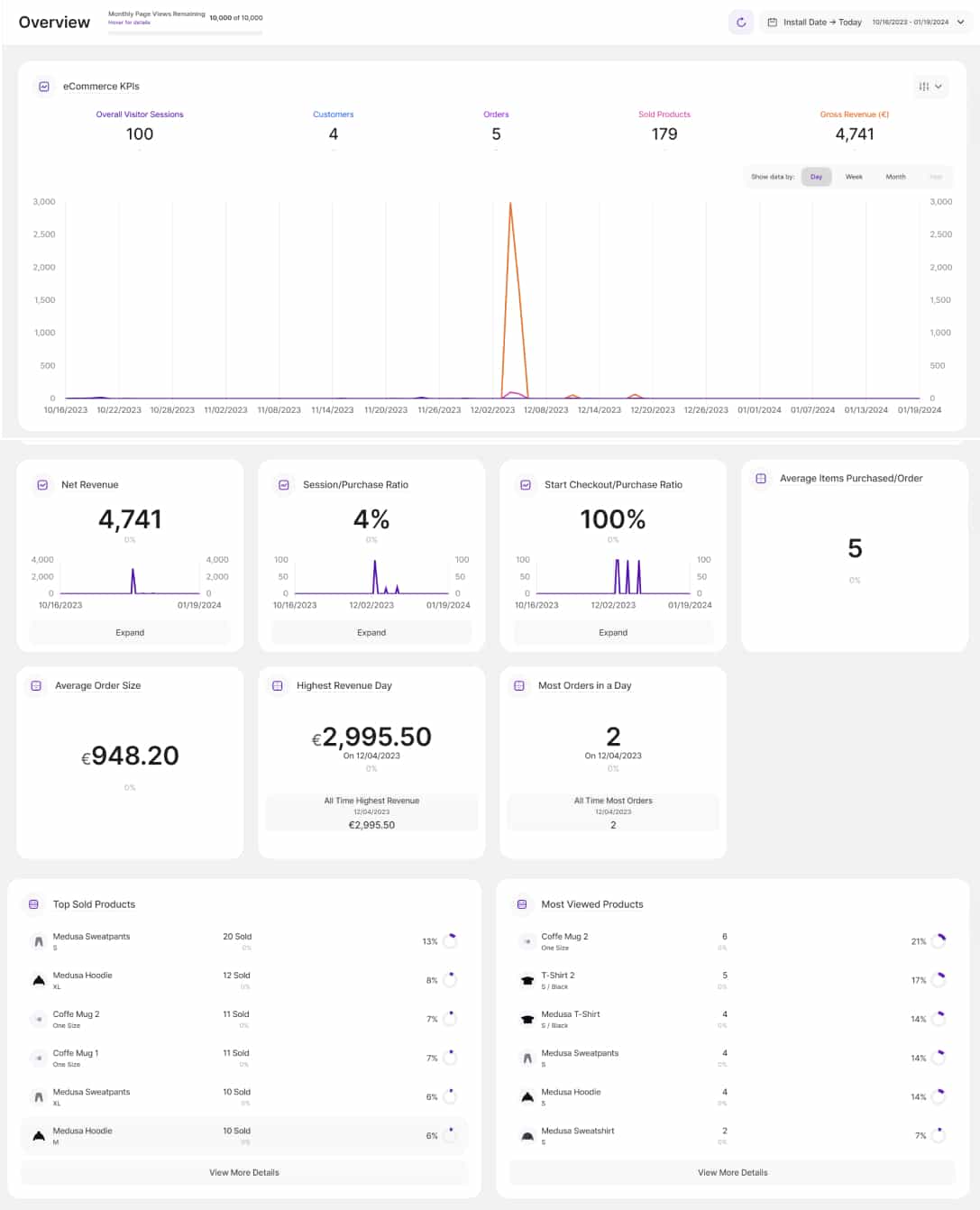Note: eCommerce Statistics is part of a wider website intelligence toolkit. This means users will be getting reports on store performance away from interactions related to product sales, basket activity, and the full checkout process from the moment they've installed the tracking code.