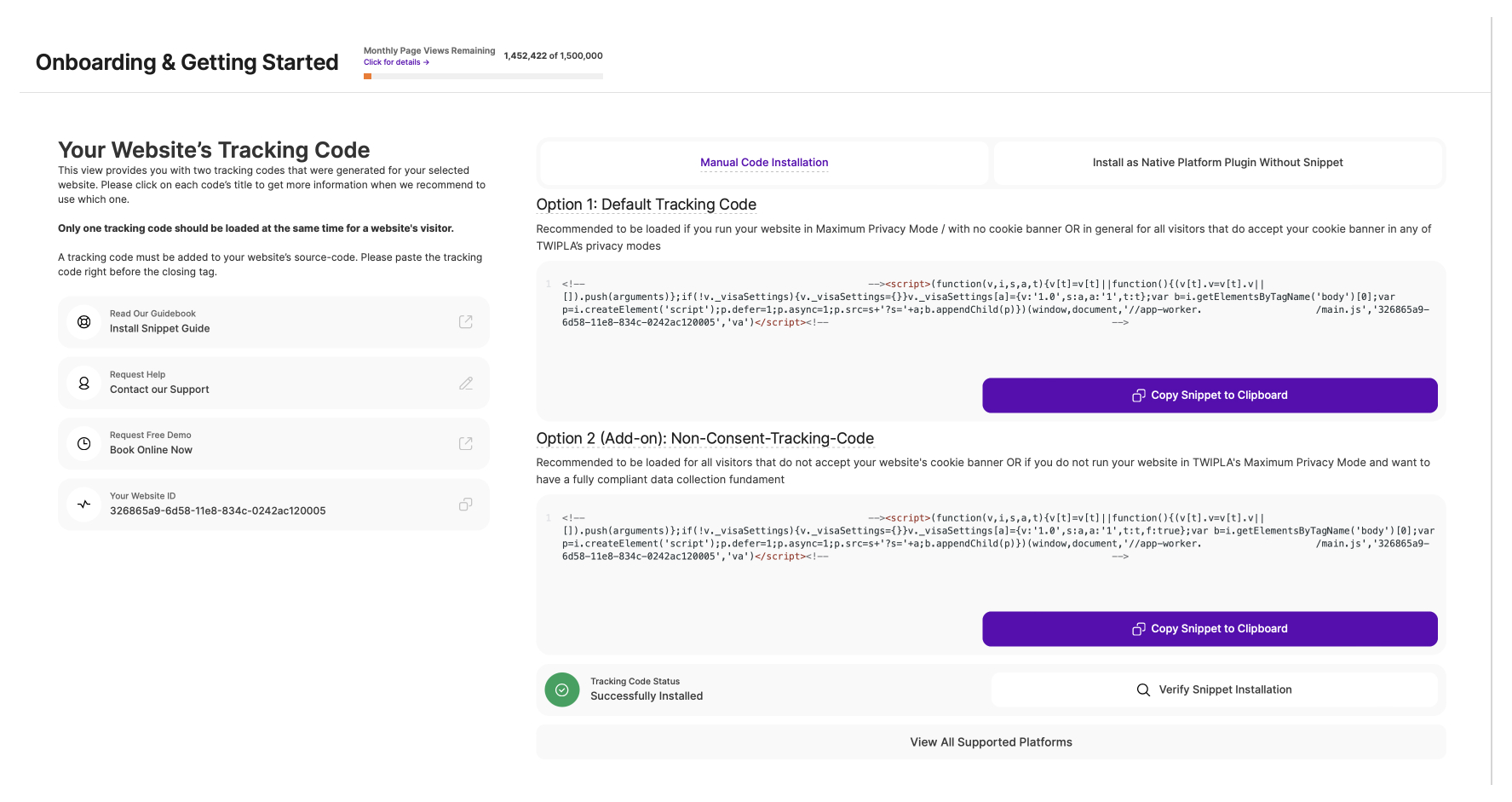 This means opening an account and installing the tracking code that fuels it with website data. We also advise that you set the privacy level so that data collection happens within your legal data threshold and that the account is set to the right currency in Module Settings.